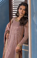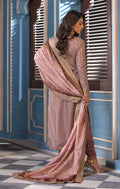 Elevate your style with our chic tea-pink chiffon shirt, adorned with delicate sequin sprays and perfectly paired with striking embroidered churidar pajama. The A-line cut of the shirt features exquisitely hand-embellished sleeve cuffs and elegant front detailing, creating a refined silhouette. Complemented by a block-printed silk dupatta, this ensemble strikes the perfect balance between modern flair and timeless elegance.
