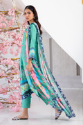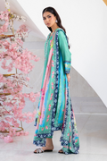 This signature teal Mina Hasan outfit is perfect for summer events! The neckline features stone embroidery, with contrasting motifs. The outfit is completed with a matching straight pant and a contrasting dupatta with teal embroidered florals.