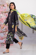 Look ever graceful in this black Signature Print Mina Hasan kurta. Featuring vibrant floral blossoms on the kurta and the contrasting lime green dupatta, the outfit is completed with a pair of solid pants.