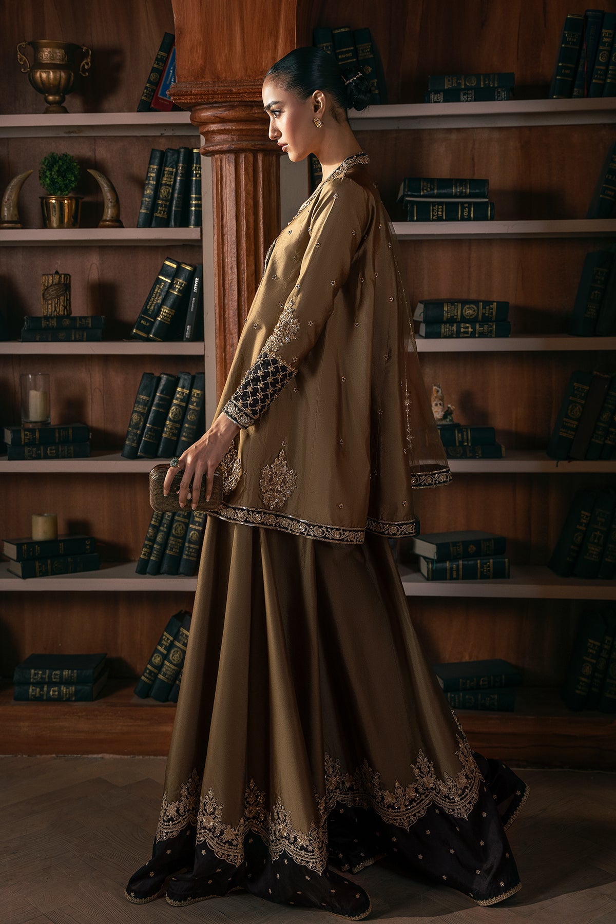 Exquisitely crafted with tilla and sequin embroidery, enriched with traditional Zardozi and heavy hand embellishment across the peplum shirt