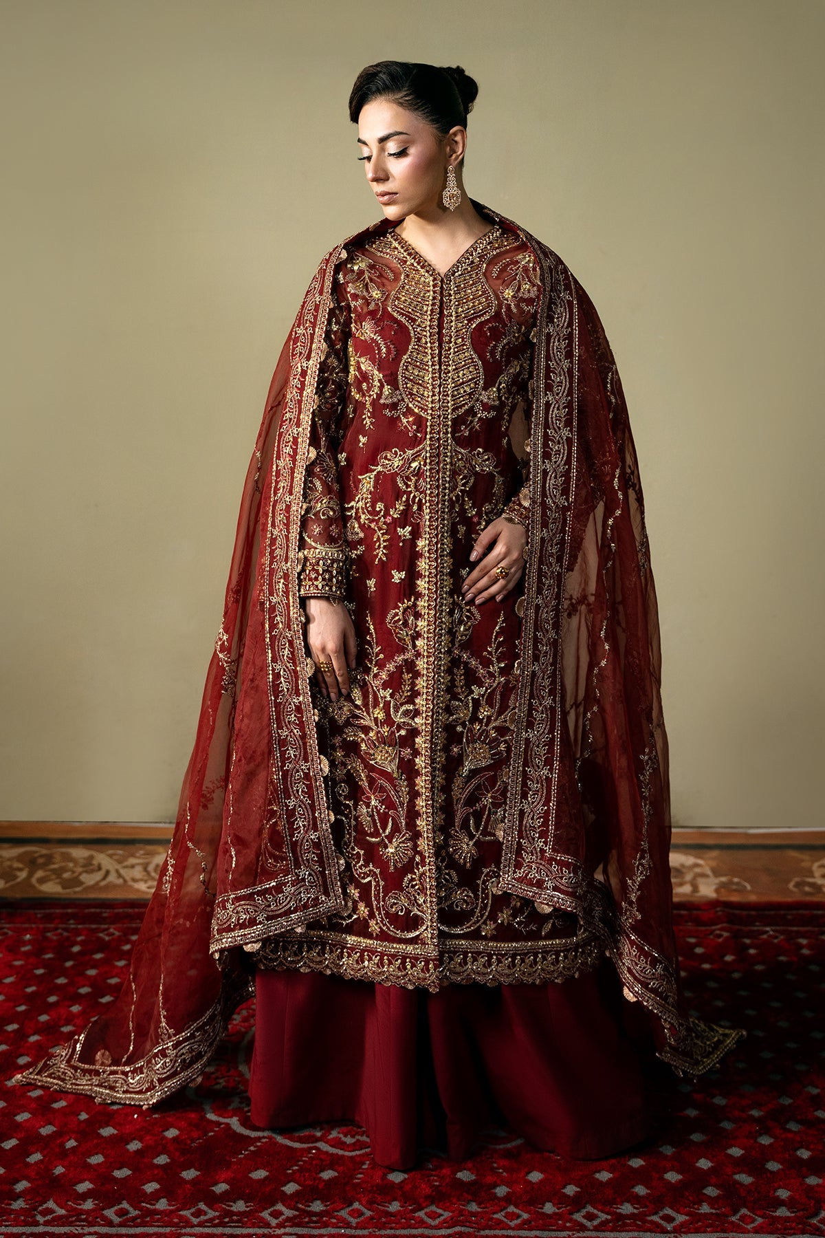 Given our Pakistani cultural background, we understand the significance of modesty. Therefore, we may make adjustments to certain design elements for modesty reasons. Examples of modifications include transforming low backs into traditionally styled regular backs, replacing drop shoulders with normal shoulders, concealing exposed stomachs, and attaching sleeves to sleeveless dresses.