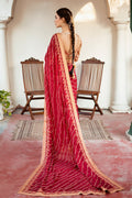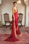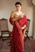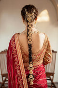 Embroidery rich with gleaming tilla and resham threads, delicately intertwined with pure zardozi artistry. Adorned in luxurious Swarovski crystals, kora, dabka, nakshi, and intricate knots, each detail sparkles with sequins, cut beads, and crystal droplets, creating an opulent harmony. A canvas of timeless beauty, crafted to captivate