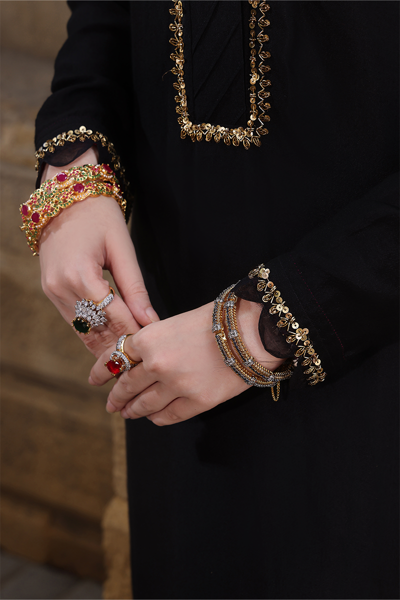 Given our Pakistani cultural background, we understand the significance of modesty. Therefore, we may make adjustments to certain design elements for modesty reasons. Examples of modifications include transforming low backs into traditionally styled regular backs, replacing drop shoulders with normal shoulders, concealing exposed stomachs, and attaching sleeves to sleeveless dresses.