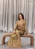 The true highlight lies in its unique antique gold tone paired with rich Kimkhab textures, making Princess Solara a one-of-a-kind couture creation. Glowing with heritage and contemporary grace, this kaftan is destined for a queen who isn’t afraid to shine.