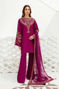 ‘Presenting ‘Mauve Passion’, a masterfully crafted ensemble that captures the essence of luxury and grace. A richly detailed neckline, adorned with meticulous maroori work, gleaming jewel pieces, and cascading tassels, sculpting a silhouette that is both flattering and timeless. The ensemble resonates with grandeur and sophistication, seamlessly paired with bell-bottom pants. Completing the look is a delicate net dupatta, framed with shimmering kimkhaab borders. ‘Mauve Passion’ is more than fashion—it’s an ode to refined chic elegance.