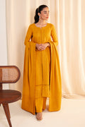 Introducing Golden Hour from the FALL PRET’24 collection—a masterpiece in mustard karandi fabric. This intricately embroidered outfit showcases same-on-same tones, featuring a chic front-open shirt design and it is paired with a stunning karandi shawl, adorned with intricate embroidery on its borders and pallus, Golden Hour is the perfect choice for winter, offering both sophistication and warmth.