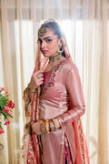 Forever Love celebrates heritage charm with a refreshing modern spirit. Designed in a radiant coral hue, the long silk kameez is delicately embroidered with resham, zari, and sequins, creating a refined elegance across its neckline and hem. Its tailored silhouette adds grace and poise, perfect for celebratory occasions.