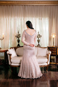 Fish Tail Gown with Dupatta – A couture statement, this fitted silhouette sculpts the body and flares into a fishtail hem. The dupatta, delicately embroidered and edged with fine detailing, softens the dramatic cut with a touch of elegance.