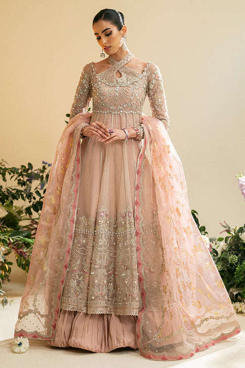 Zunia is a lavishly curated lavender ensemble that exudes refined elegance. The organza shirt with beautiful harmonized needlework, paired flawlessly with crushed trousers in raw silk, showcases meticulous craftsmanship adorned with pearls, dabka, kiran, tilla, and exquisite threadwork. Elevate your formal aesthetic with the ethereal allure of Zunia, where breathtaking embroidery meets the richness of lavender tones, guaranteeing you a standout presence on your most treasured occasions.