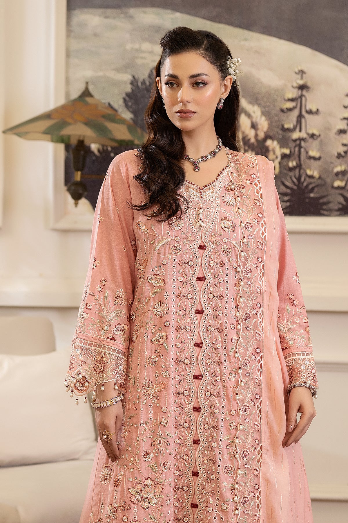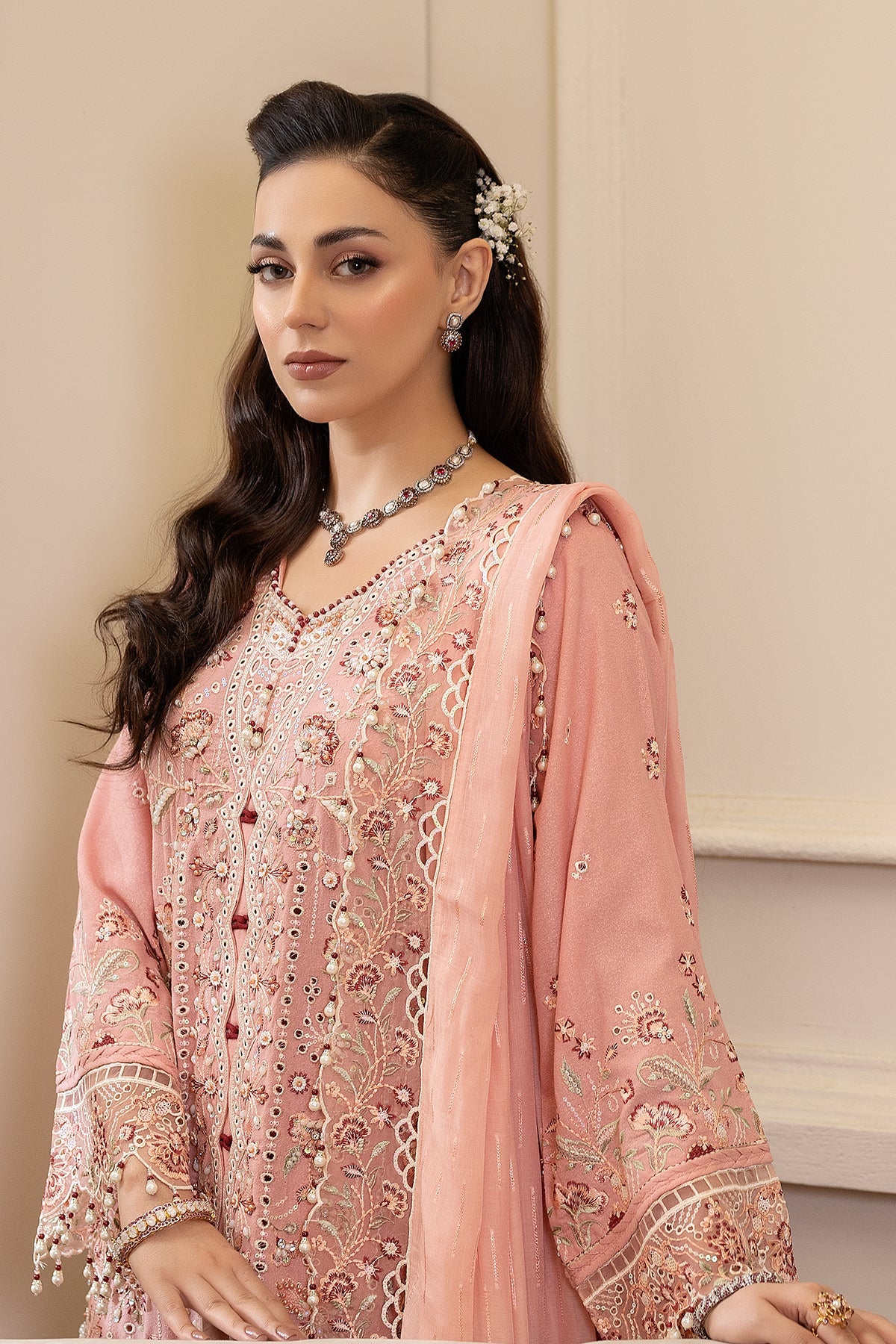 Given our Pakistani cultural background, we understand the significance of modesty. Therefore, we may make adjustments to certain design elements for modesty reasons. Examples of modifications include transforming low backs into traditionally styled regular backs, replacing drop shoulders with normal shoulders, concealing exposed stomachs, and attaching sleeves to sleeveless dresses.