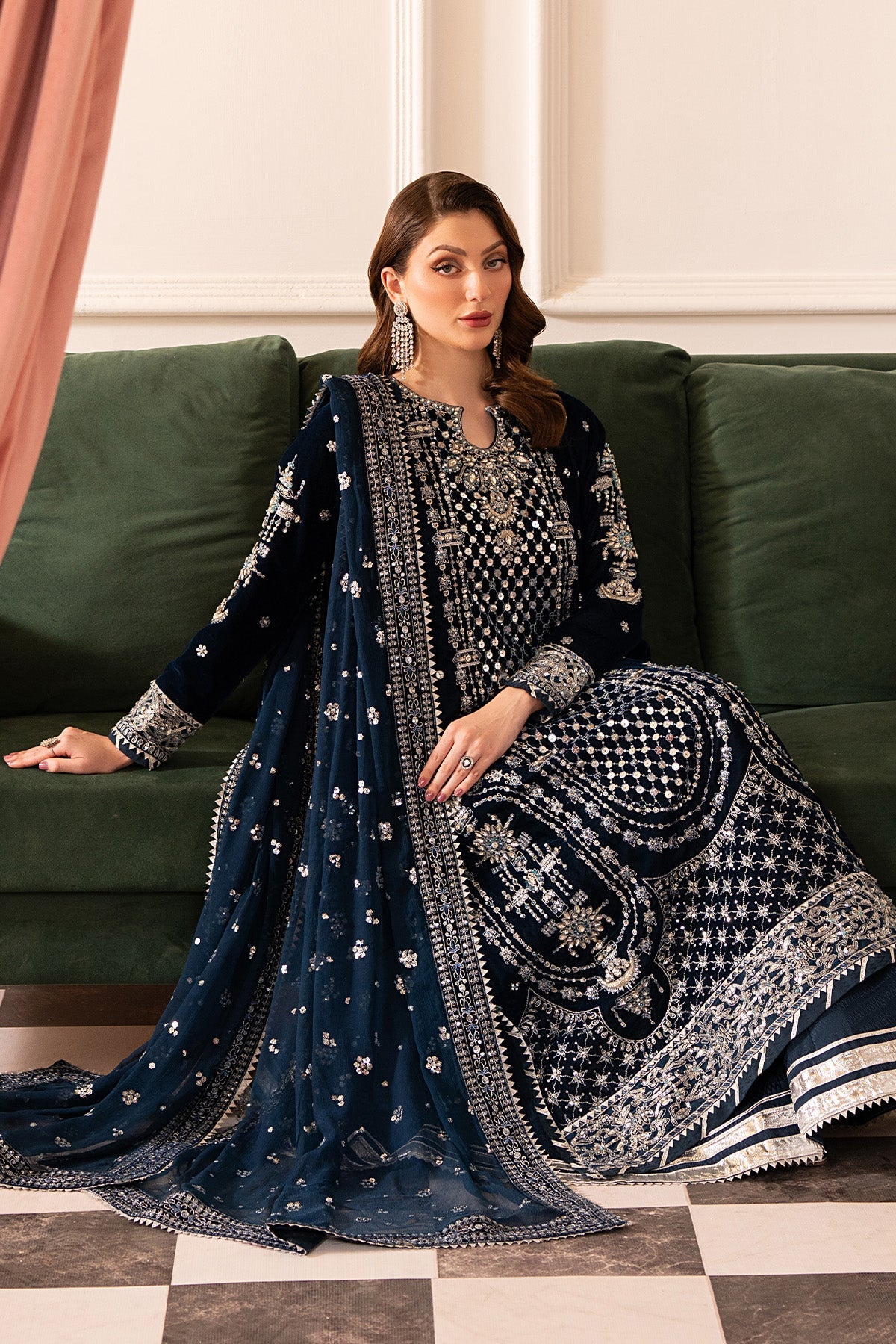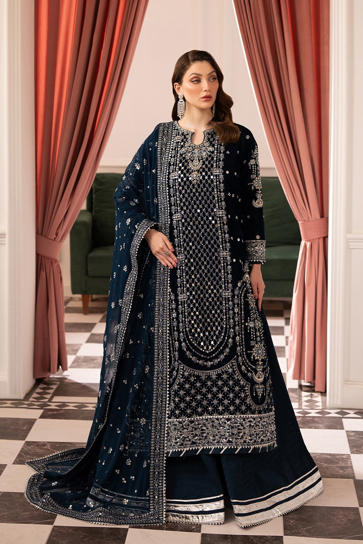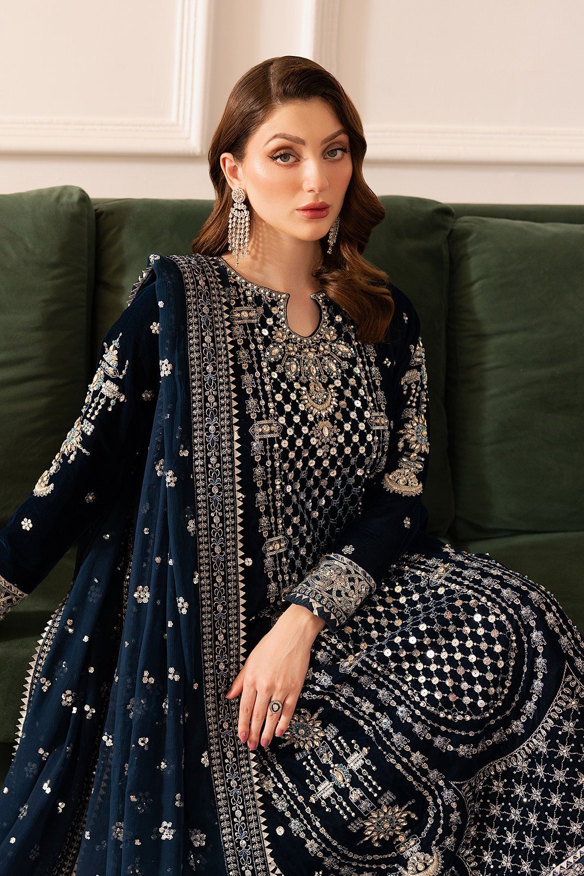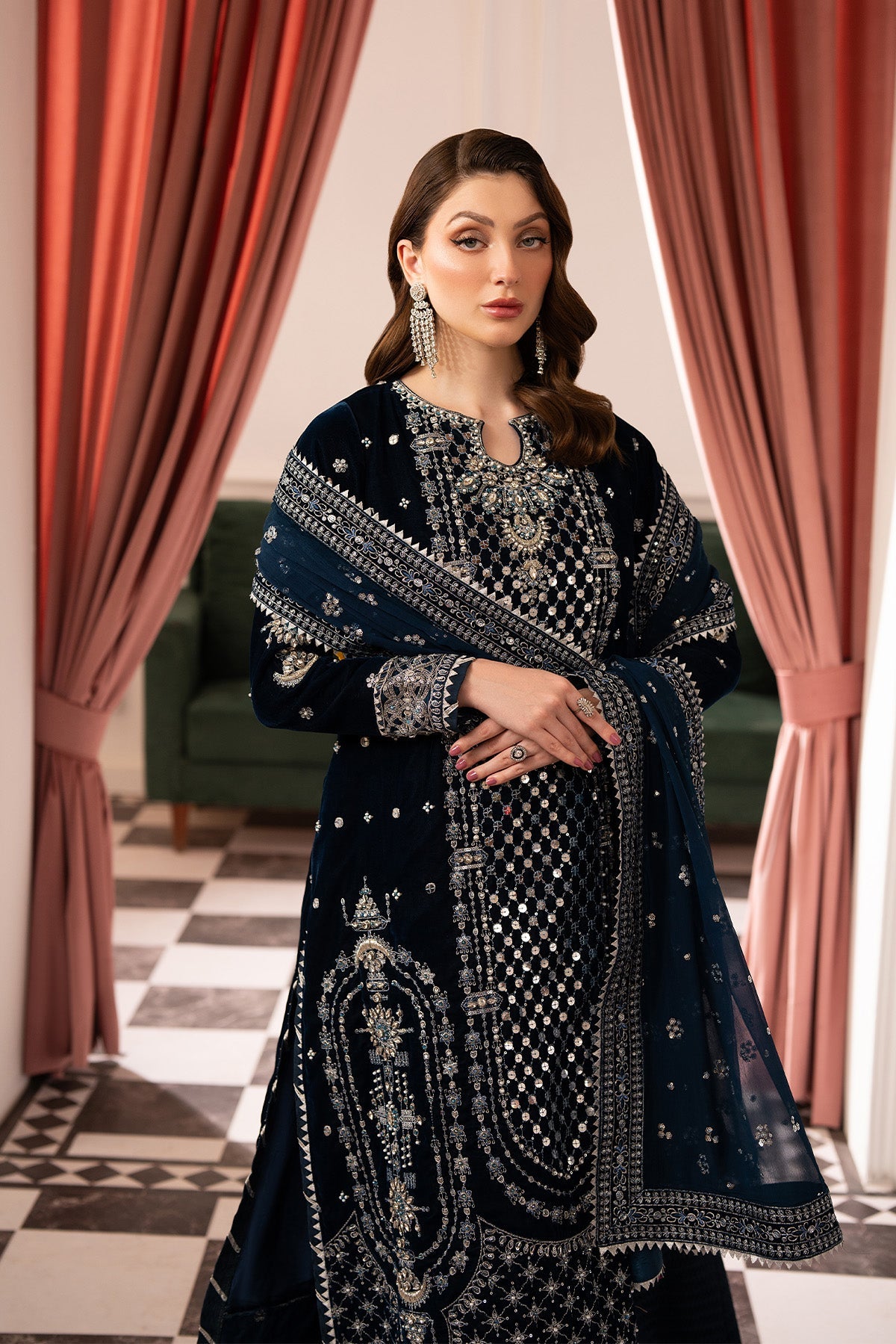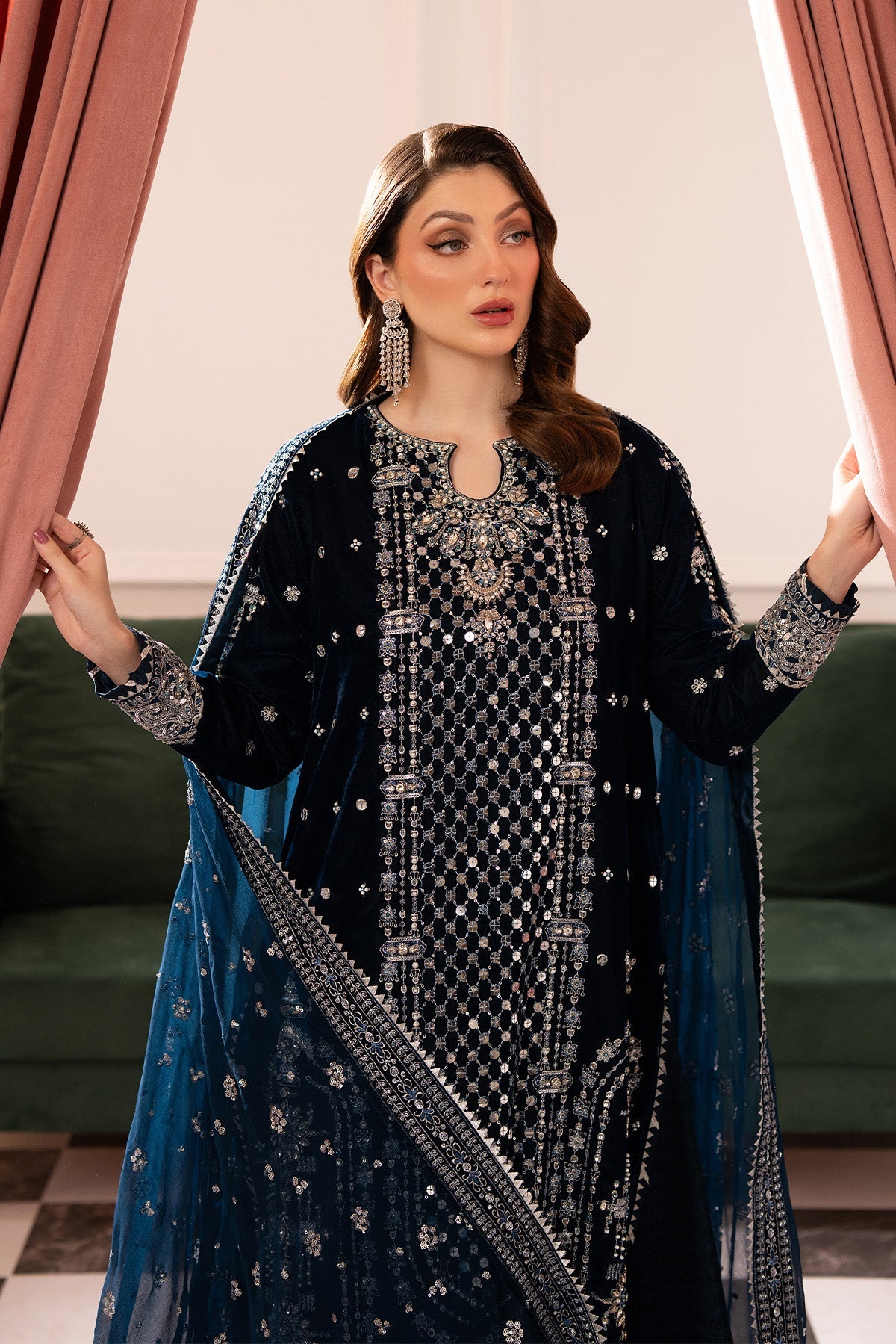 Embroidered Velvet Front With Ada Work