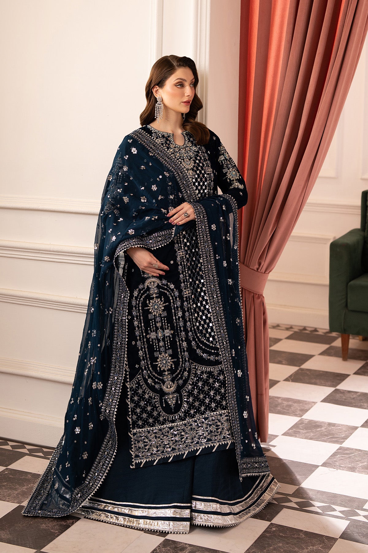 Given our Pakistani cultural background, we understand the significance of modesty. Therefore, we may make adjustments to certain design elements for modesty reasons. Examples of modifications include transforming low backs into traditionally styled regular backs, replacing drop shoulders with normal shoulders, concealing exposed stomachs, and attaching sleeves to sleeveless dresses.