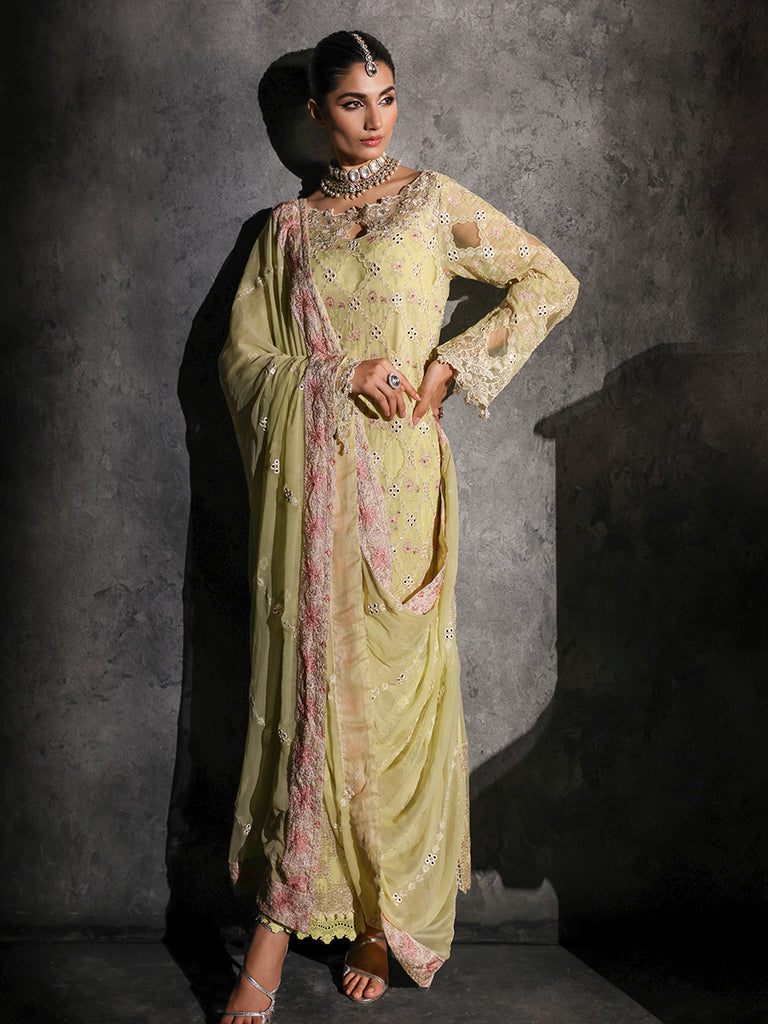 Rajbari | Sage Chiffon Edit | Ivy