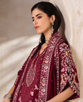 A vision of timeless elegance, this deep red ensemble is crafted on luxurious Sabreena silk, adorned with intricate embroidery and delicate hand embellishments. The beautifully sculpted neckline adds refinement, while elbow-length sleeves feature exquisite cutwork and tasseling details for a graceful finish. Paired with a flowing crushed gharara-style bottom in a striking coral contrast and a matching embellished chiffon dupatta, this look embodies royal charm, fluid movement, and enduring sophistication, perfect for moments that deserve distinction.