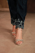 Long Shirt With Embroidery Buttons And Embroidered Bunch On Sleeves Paired With Straight Pants With Embroidery For A Chic, Modern Look.