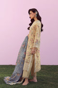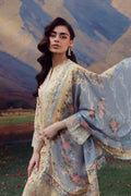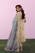 Delicate, graceful, and effortlessly refined, this butter yellow and grey contrasting ensemble captures the essence of modern femininity. It is adorned with intricate floral print and embroidery in gentle hues, enhanced by a finely detailed lace panel along the neckline and borders. Subtle craftsmanship and airy textures create a look that feels both luxurious and light.