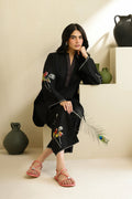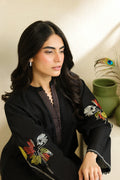 This black outfit is a contemporary ensemble featuring a straight cut kurta and chic culottes. The sleeves and pants has embroidered floral motif which offers the perfect mix of comfort and breezy seasonal charm.