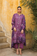 A striking purple ensemble featuring intricate white tribal-inspired motifs and geometric patterns. Paired with a coordinated dupatta and fringe detailing, this look blends bold color with artisanal charm—perfect for a contemporary yet cultural statement.