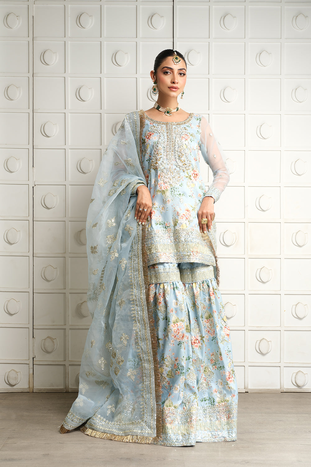 Printed Embroidered & Sequenced Gharara (Raw Silk) 4.67 Meters