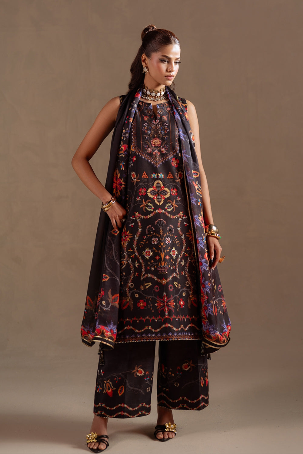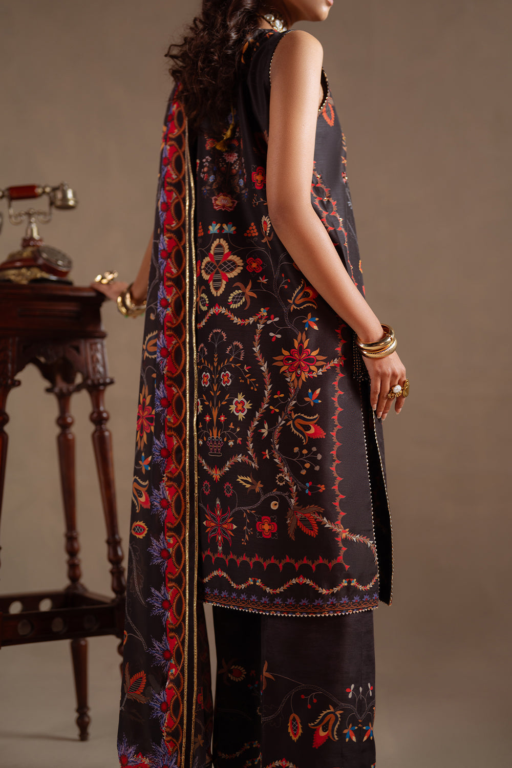 This elegant ensemble is tailored from luxurious silk fabric, beautifully enhanced with embroidery and intricate resham detailing. A matching printed silk dupatta completes the look with effortless sophistication and grace.