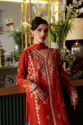 A harmony of earth and elegance — Neelam is a three-piece ensemble that redefines fluid sophistication. The shirt features embroidery and ada work across the front, back, and neckline, paired with culotte pants finished with a graceful border at the hem. A striking tie-and-dye medium silk dupatta with a velvet border completes the look, making this bold outfit perfect for the season.