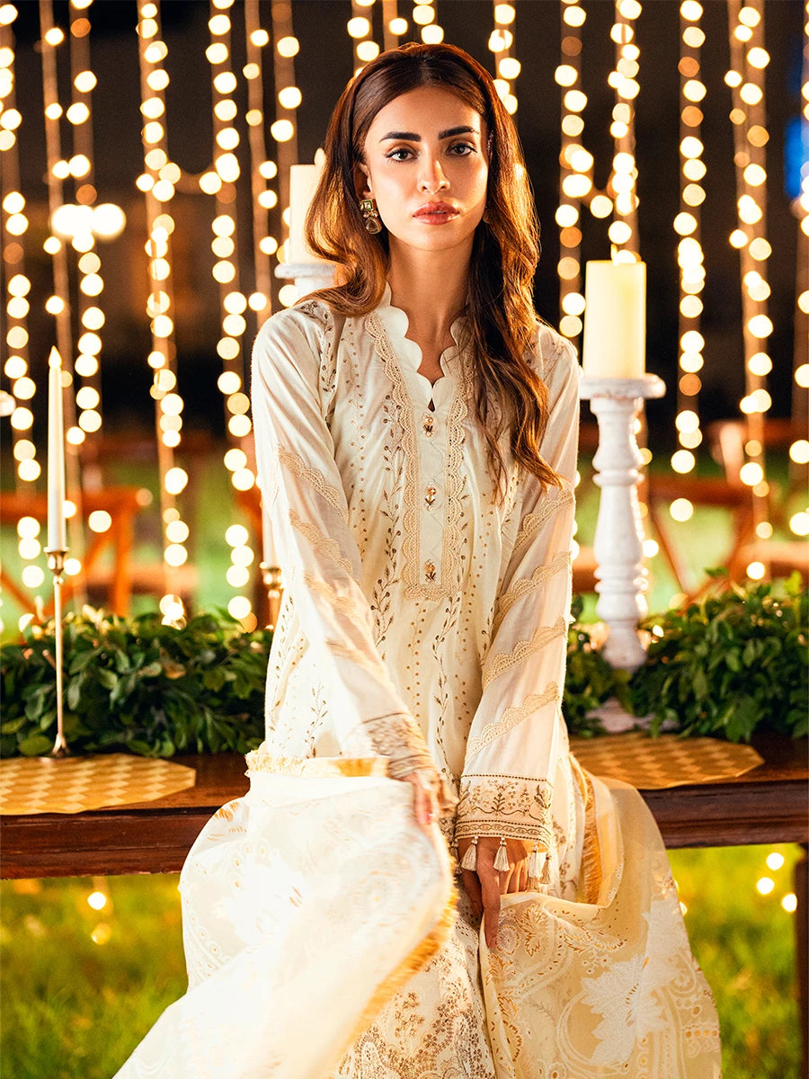 We at Khanum Jan are pleased to offer our customers a premium sewing service that prioritizes impeccable sewing styles and exceptional quality. Our team meticulously plans and sews dresses according to the brand shoots displayed on our website. However, it is important to note that brands often showcase certain design elements for illustrative purposes only, which may not be included in our dresses. Consequently, customers should anticipate minimal variations.