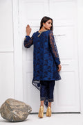 It can be paired with navy blue detailed straight pants and coordinating chiffon dupatta.