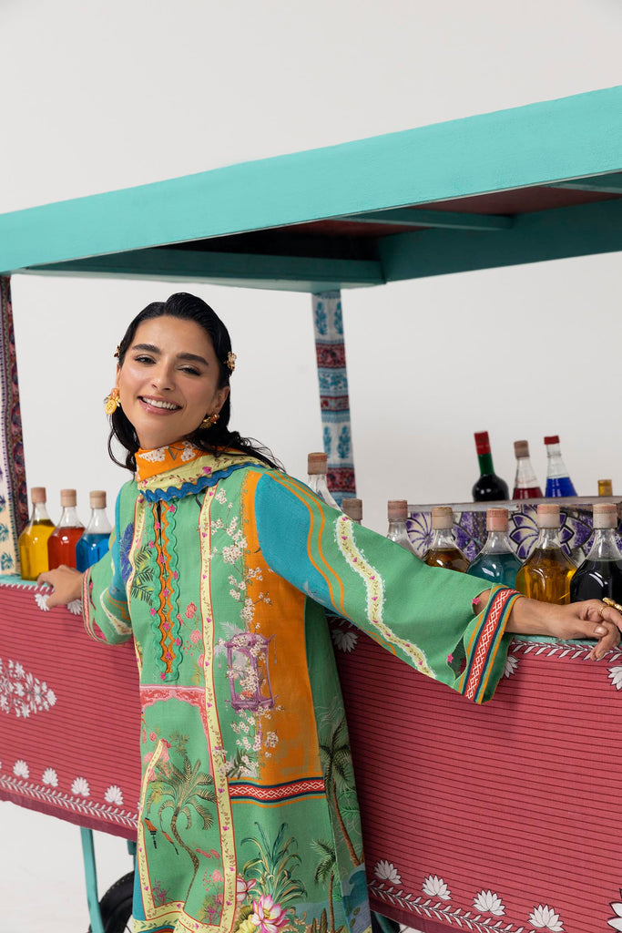 Chic contemporary shirt on a sage green base, paired with a digitally printed dupatta.