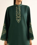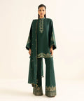 Elevate your style with our three-piece embroidered green ensemble featuring a cotton shirt and trousers paired with a lawn dupatta.