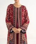 Make a statement in our printed maroon bemberg grip A-line shirt and viscose raw silk flared trousers paired with a matching blended chiffon dupatta.