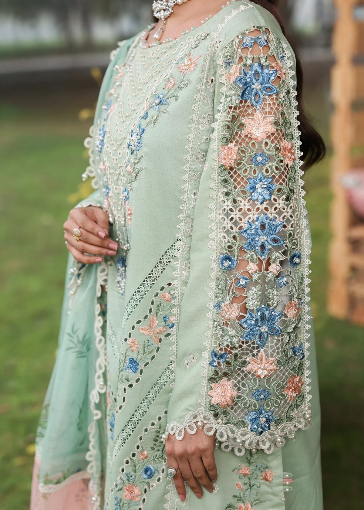 Embroidered Chikankari Sleeves (Lawn): 0.66 MTR