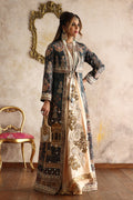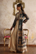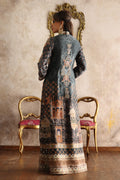 Pure silk outfit featuring intricate Mughal print, outlined with tilla and enhanced with Zardozi, Nakshi, Swarovski Dabka, and Pearl work, creating a look of pure sophistication.