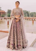 Description: Beyond the gardens of Shalimar sits the humble abode of ‘Shah Begum’. She is beyond beautiful and her kindness is revered across the empire. A light amethyst purple soft bareeze net lehnga choli and duppata set is layered with chandi tilla floral and jaal embroideries. A play on purple fabricated appliqué accents the lehnga. Heavily embellished silver detailing is scattered throughout with resham, naqshi, sitara, hand applied crystals and pearl beading.