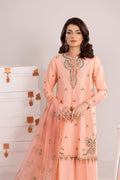 The bell of the ball, Blush Dawn fuses a modern palette with heirloom aesthetics. A delicate shade of peachy pink is set as the base for this silk wonder with luxe hand applied embellishments throughout the shirt and trouser. Hints of iridescent sequins and beads in pinks, greens and blues add a couture touch. The fully embellished orgnaze dupatta has a thick satin border finishing for the most opulent look.