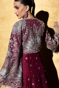 n our favourite deep berry pink! This front-open jacket with a bolero is one of our most modern silhouettes yet designed for luxury weddings and statement occasions. The outfit is richly hand-embellished with katdana, crystals, and intricate detailing over soft organza, paired with structured raw silk pants for that perfect balance of couture and comfort.