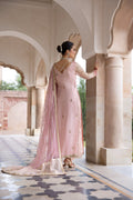 Pure khadi tissue shirt emballished with dapka and rashem work and pant on sheesha silk,dupatta net with pallu work.