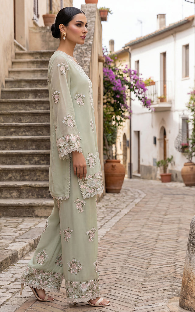 Introducing the epitome of luxury and elegance - our exquisite 3-piece suit. This stunning ensemble features a shirt and trouser crafted from chiffon material, adorned with intricate multi embroidery. Paired with a delicate chiffon dupatta, this ensemble is perfect for any special occasion.
