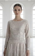 Given our Pakistani cultural background, we understand the significance of modesty. Therefore, we may make adjustments to certain design elements for modesty reasons. Examples of modifications include transforming low backs into traditionally styled regular backs, replacing drop shoulders with normal shoulders, concealing exposed stomachs, and attaching sleeves to sleeveless dresses.