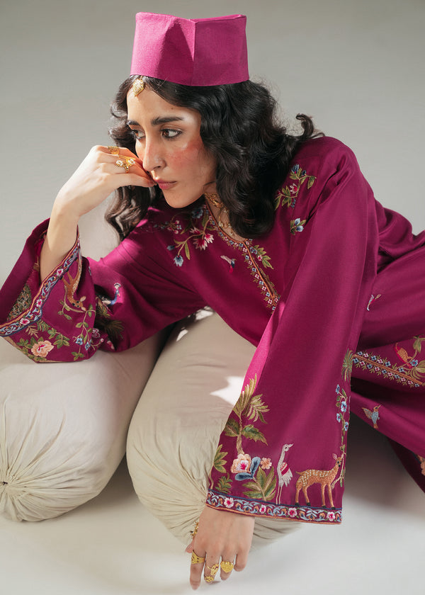 Crafted from pure raw silk, this outfit radiates timeless luxury with its natural sheen and soft texture. The embroidery takes inspiration from the Darvash old era, reimagined with a touch of modern elegance — blending heritage artistry with contemporary sophistication. A perfect balance of tradition and style, this piece is designed to make a graceful yet bold statement.