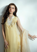This stunning two-tone yellow ensemble exudes elegance and modern charm. The fully embroidered and embellished long shirt, crafted from pure raw silk, showcases intricate handwork and embroidery details that adds richness to the look. Paired with sleek pure silk pants and a light weight pure organza dupatta with embellishments.