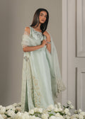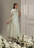 This double layered shirt, rendered in a refined muted blue that mirrors the serene radiance of moonlight, is adorned with meticulously crafted gold embroidery in intricate floral motifs and lace appliques. The artistry exudes sophistication and classical elegance, beautifully complemented by a sheer organza dupatta and pure silk culottes for a look of timeless grace.
