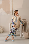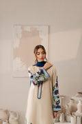 Mesmerising marine life colors come to life on an off-white karandi shirt, featuring a relaxed A-line silhouette. A timeless staple with a subtle irreverence introduced through striking royal blue embroidered Turkish floral motifs and embroidered details. Paired with straight pants and featuring a royal blue chiffon dupatta (that can be added separately).