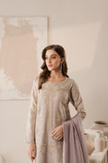Composed with subtle tones on a rawsilk canvas, the kurta is adorned with delicate hand-aari embroidery with floral imagery and features fabric manipulated details. Paired with a pure medium silk dupatta, this is going to be a head-turner for you!