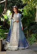 A timeless ivory ensemble adorned with delicate handwork and soft silver accents. Finished with a serene blue ombré dupatta, it blends classic charm with modern elegance — effortlessly graceful and beautifully refined.