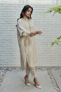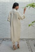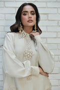 This beautiful topaz loose fit shirt features formal hand embroidery of heavy resham cutwork, hand-made 3d flowers, and pearl embellishment featuring a statemet cutwork collar. Paired with our signature pants with organza detail to complete the look.
