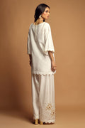 White Formal Shalwar Kameez With Formal Hand Embroidered Floral Motifs Of Zardoze Work. Adorned With Pearl, Beads and Cutdana Embelishment. Finished With Scallop Detail On The Hemline. Paired With Hand Embelished Floral Pearl Work Shalwar.
