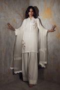 Elevate your elegance with this formal shirt, intricately embroidered with zardozi, pearls, and exquisite appliqué work. Paired with our signature shalwar and a pure organza dupatta, this ensemble is perfect for a festive look.