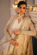 Embrace the elegance of 'Leiyn,' a resplendent creation in a divine ivory shade. This open jacket design features an enchanting array of intricate floral patterns, rendered with exquisite precision in gold tilla, creating a striking composition. Surrounded by an elegantly crafted border, this piece stands as the hallmark of sophistication. Tailor it to your style, making it a perfect choice for a luxurious engagement or nikkah ensemble that exudes grace and timeless beauty.