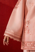 Awash in the glow of dawn, Roselynne unfolds on a poetic salmon pink raw silk canvas, where delicate tonal florals bloom in whispers of embroidery, entwined with intricate laser-cut details and framed by gossamer organza lace. The tonal farshi shalwar, adorned with embroidered borders and airy laser accents, flows with quiet refinement, while a scalloped organza dupatta — ethereal and exquisitely embroidered — drifts like a breath of morning light. Dreamy, romantic, and timelessly poised, Roselynne embodies the serene allure of fall — where silk glows softly, and elegance lingers like a memory.