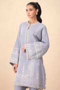 Introducing Elara – the ultimate go-to look for fashion-forward brunches and effortless days out. This two-piece embroidered set in a dreamy ice blue hue is designed to turn heads. The boxy, oversized shirt adds a relaxed yet polished vibe, featuring intricate floral embroidery that elevates its playful charm. Paired with sleek, tailored tonal pants, the ensemble creates a flattering, modern silhouette that's both comfortable and chic.